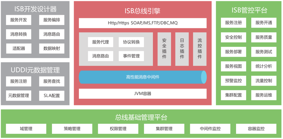 2)传输服务:确保通过企业总线互连的业务流程间的消息的正确交付,还包括基于内容的路由功能。
